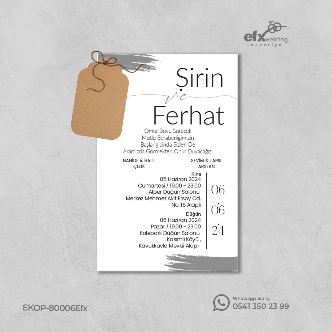 Ücretsiz tasarım desteğinde bulunmak için Whatsapp Sipariş butonuna tıklayarak iletişim kurabilirsiniz. Beğendiğinizi davetiye modeline ücretsiz tasarım hazırlanır. Tasarıma onay vermeniz durumunda baskı aşamasına geçilir.