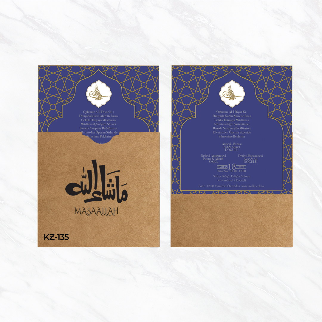 Efx Wedding Kare Zarf Baskılı Sünnet Davetiyesi-KZB-90016Efx-100